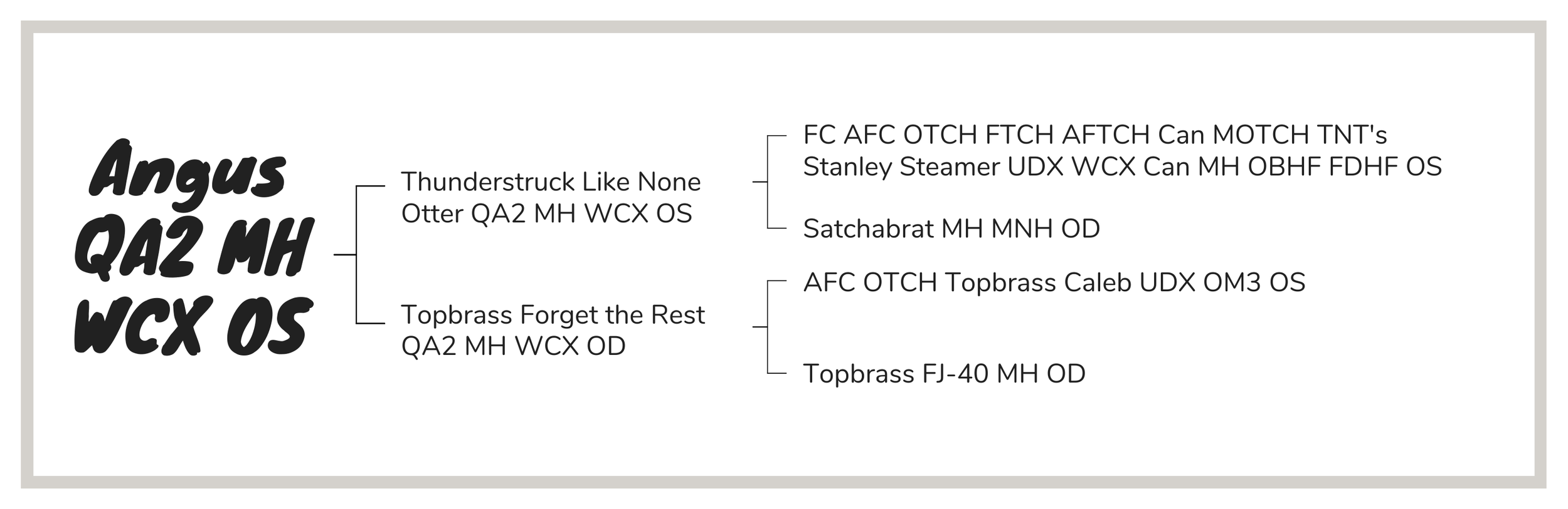 Angus is a smart, talented dog who brings both ability and temperament to everything he does. He’s a true team player with a strong work ethic and a natural love for the job. Angus is easygoing, dependable, and a pleasure to be around - good with other dogs, welcoming with people, and a true gentleman in the house. His kind nature and trainable attitude are qualities we consistently see passed along to his offspring.